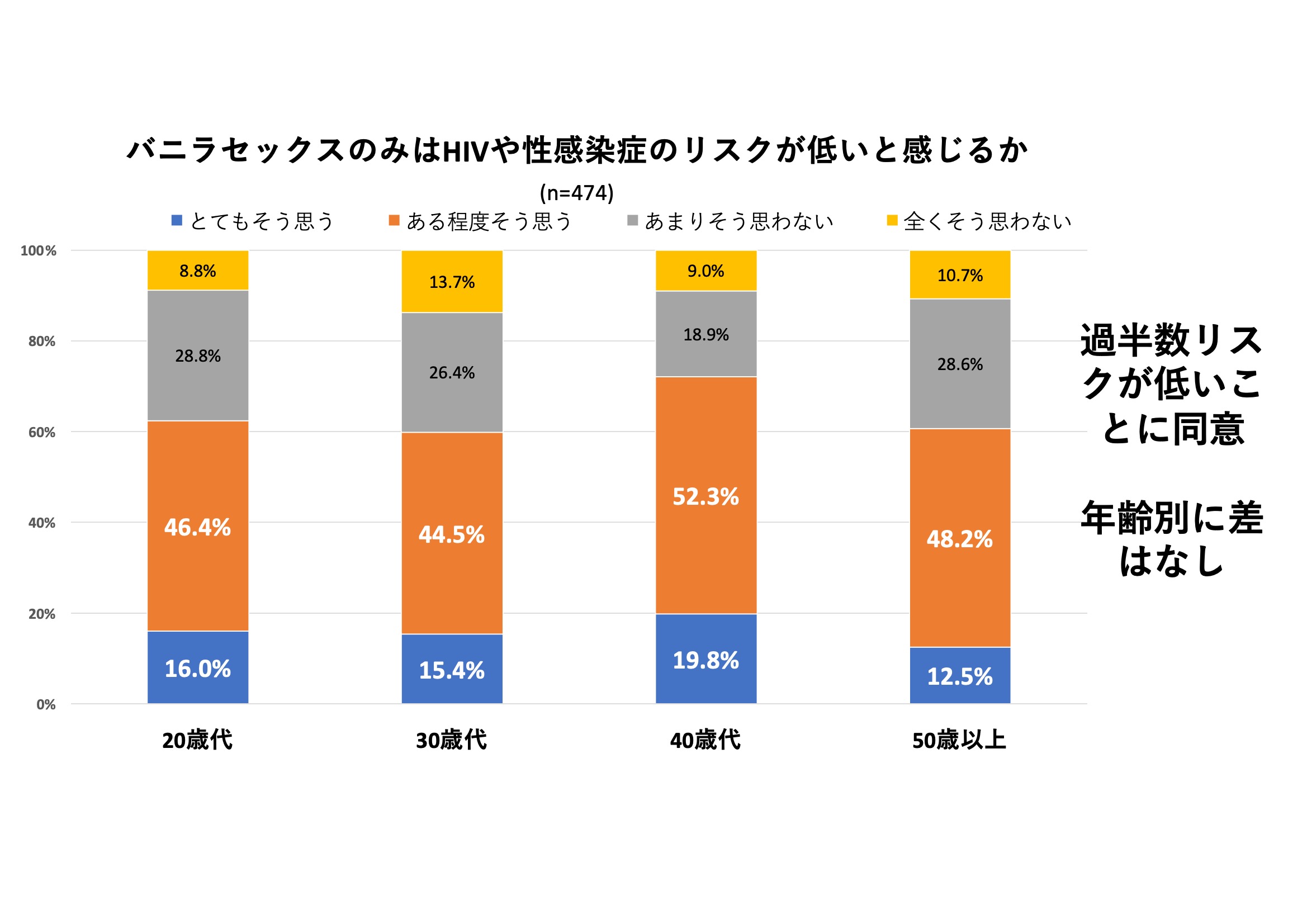 さらに、過半数の回答者が「バニラのみならHIVや性感染症のリスクが低い」と認識していました。