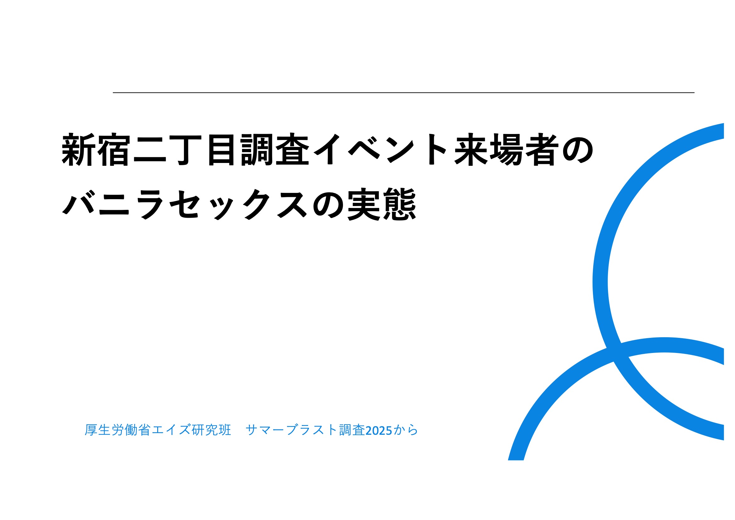 本レポートは、2025年7月に新宿二丁目で開催された「SUMMER BLAST」参加者を対象に実施した「性の健康」に関するアンケート調査の結果を、厚生労働省エイズ研究班の研究の一環としてまとめたものです。