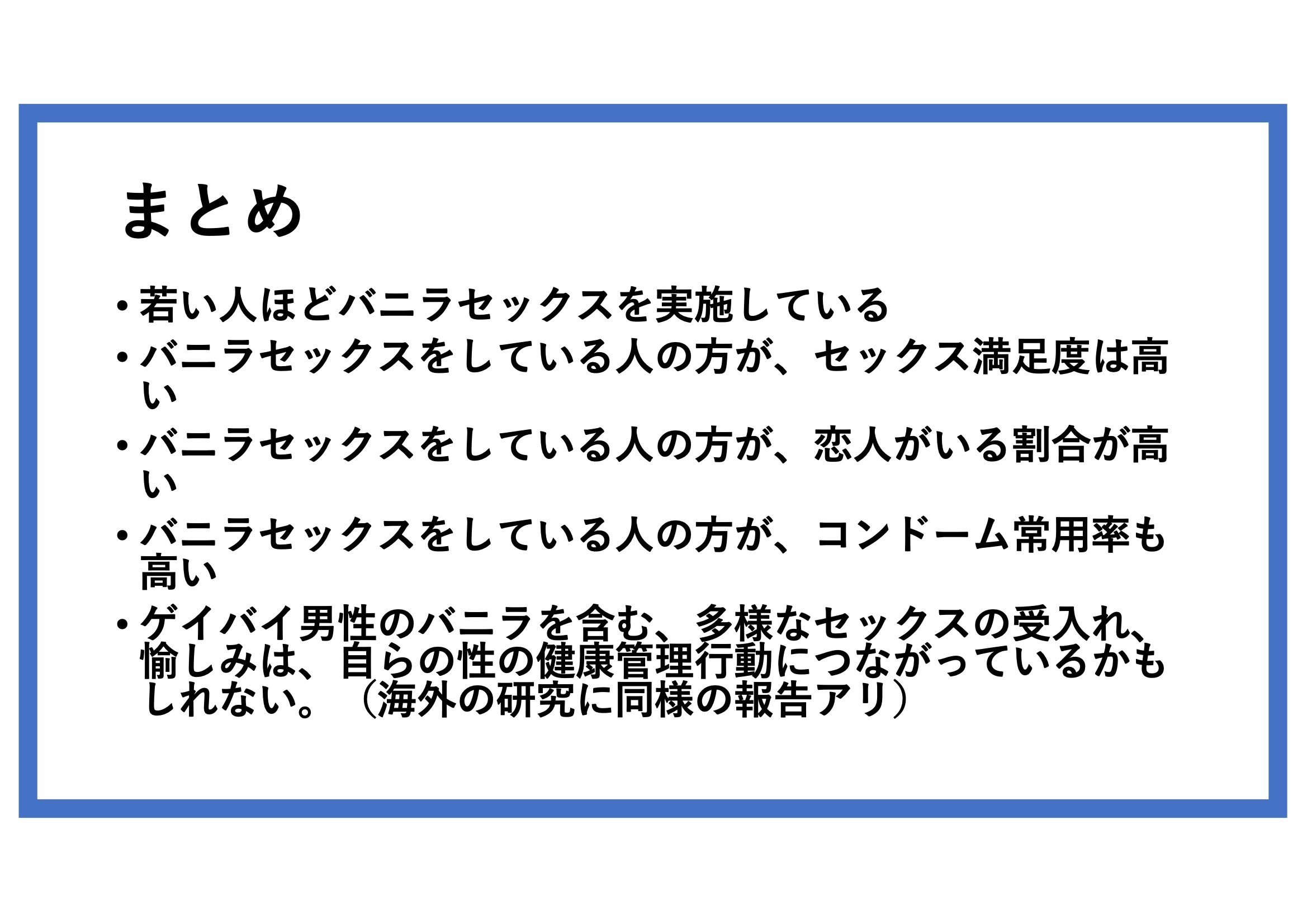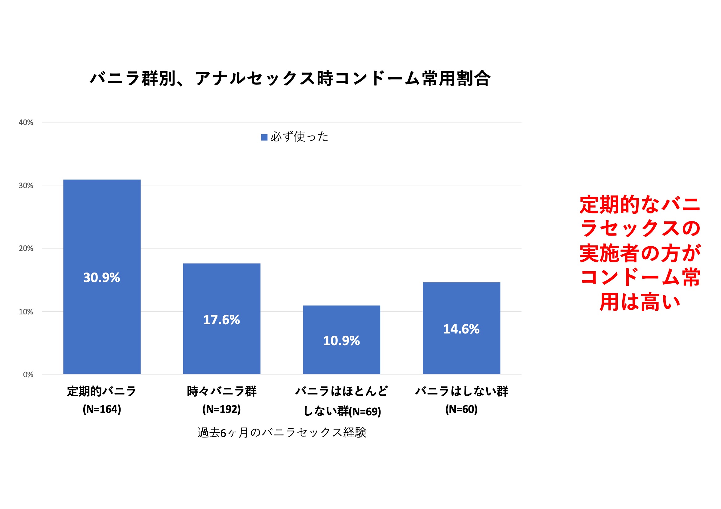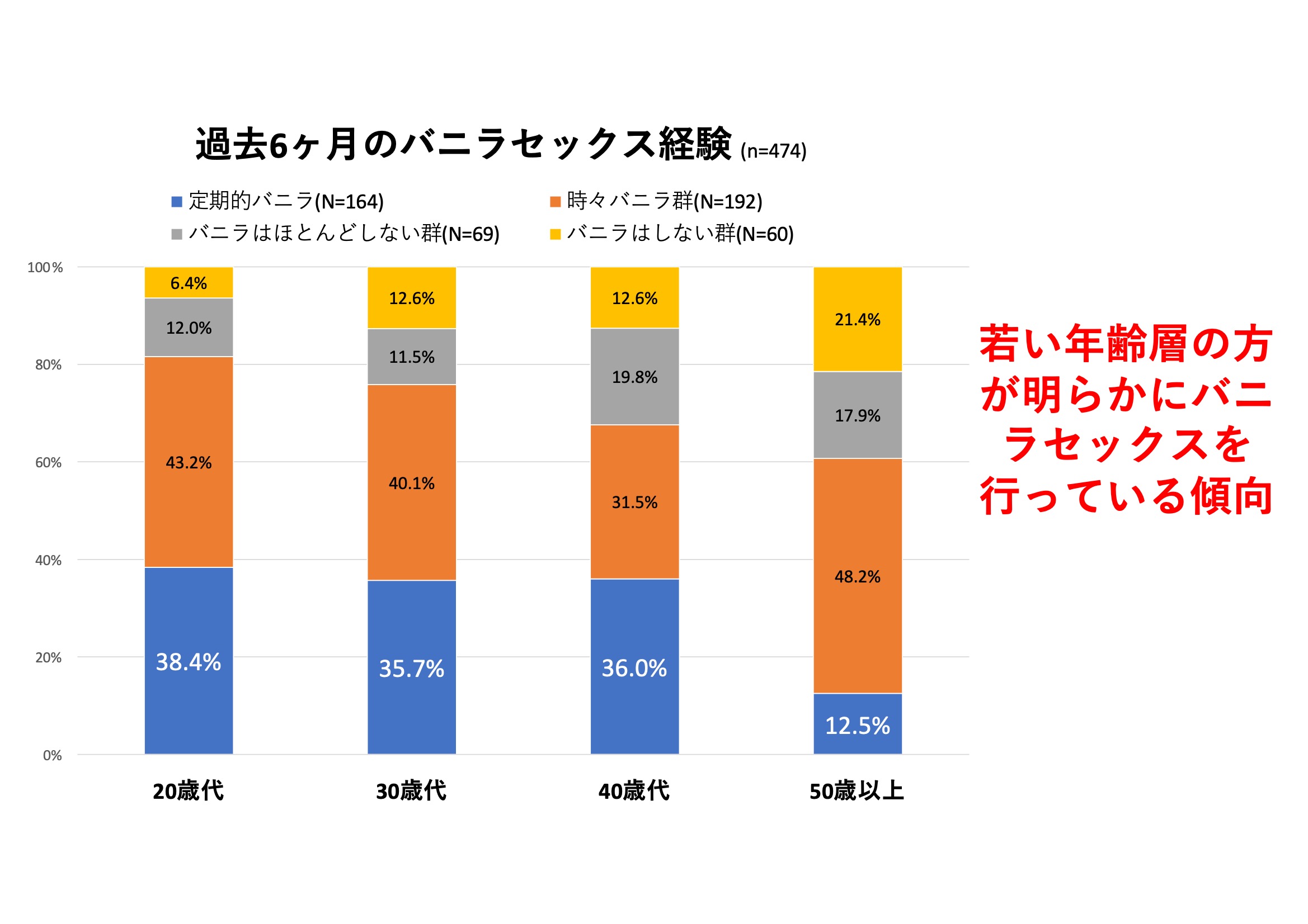 アンケート結果では、若年層の方がバニラセックスを行っている割合が高い傾向が見られました。