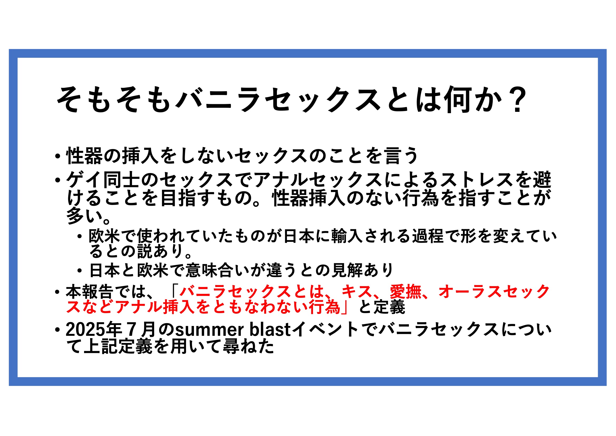 「新宿二丁目調査イベント来場者のバニラセックスの実態」に関する詳細なレポートを公開しました。