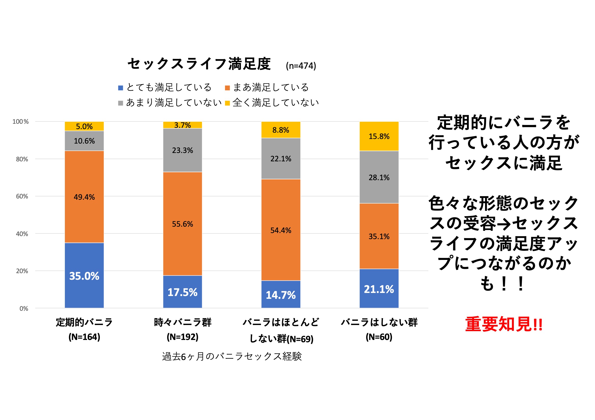 バニラセックスを定期的に行っている人の方が、セックス全体の満足度が高いという結果が出ています。